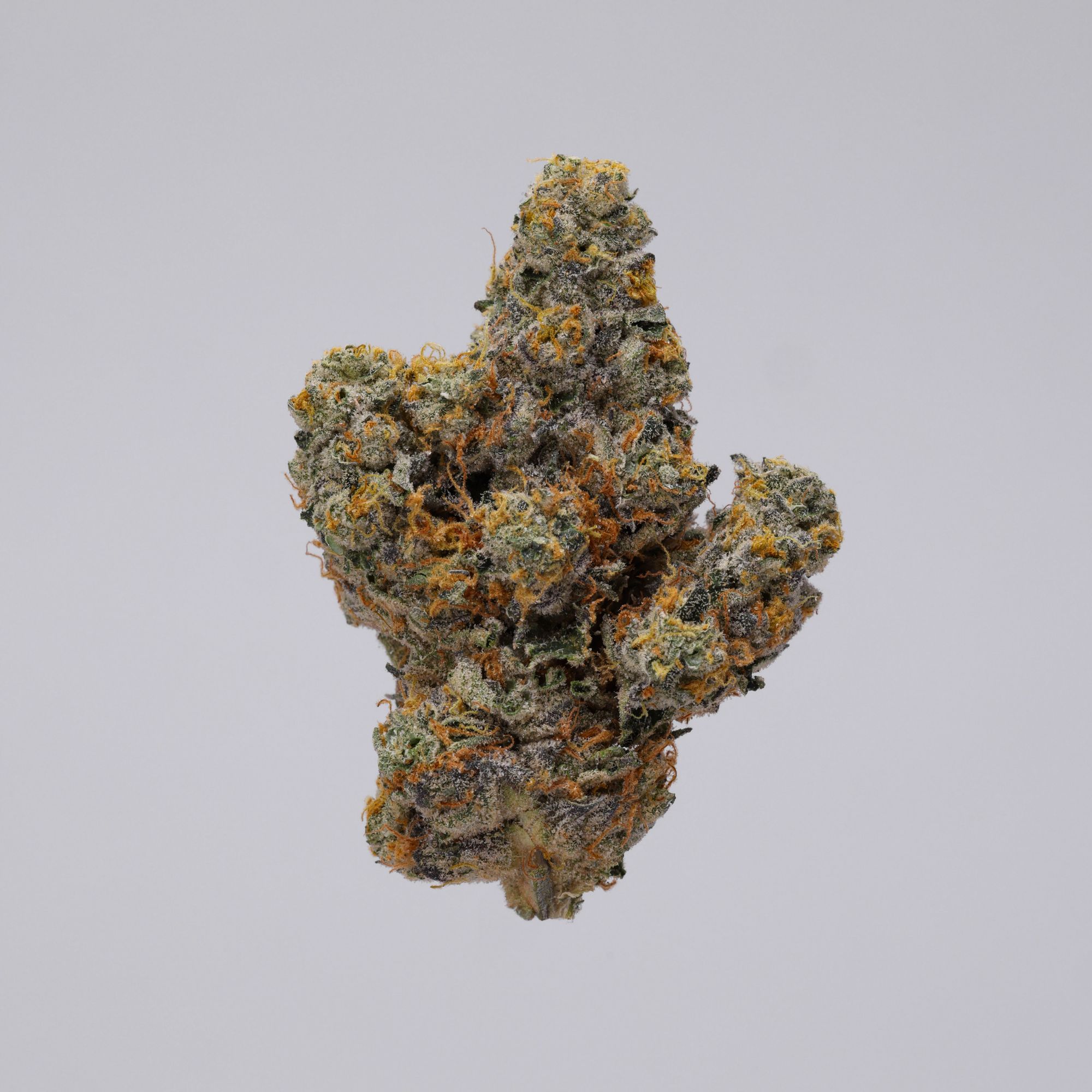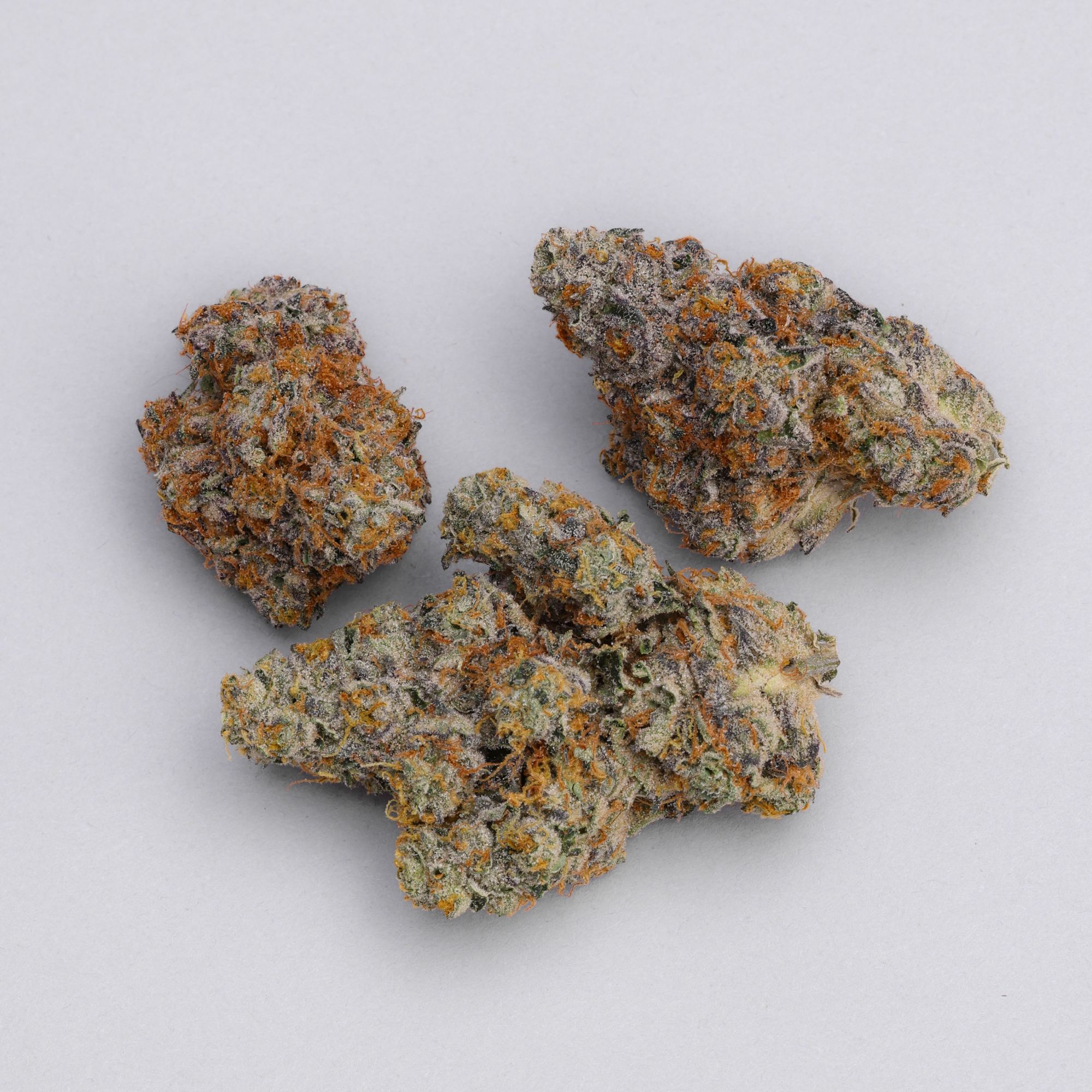 The High Society strain doesn’t just smoke great, it looks incredible. Its dense, resin-rich buds display deep greens, purple highlights, and vibrant orange pistils, all frosted in trichomes. The aroma is unforgettable, mixing fresh mint, garden herbs, sweet and sour notes, and a peppery fuel kick.